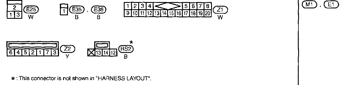 Main Harness, Engine Room, And Body Harness Connector Views: