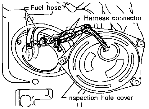 3. Disconnect harness connectors under inspection hole cover.
