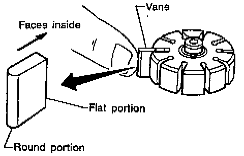 - When assembling vanes to rotor, rounded surfaces of vanes must face cam ring side.