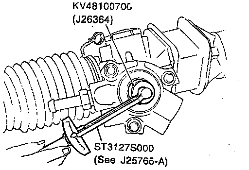 Adjust pinion rotating torque as follows:1. Set rack to the neutral position without fluid in the gear.