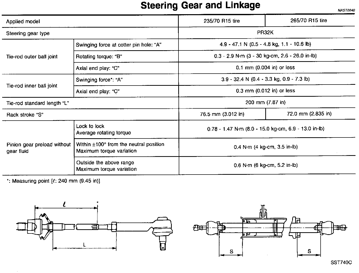 - Refer to Steering Gear / Adjustments for Pinion Rotating Torque and Rack Sliding Force adjustment procedures.