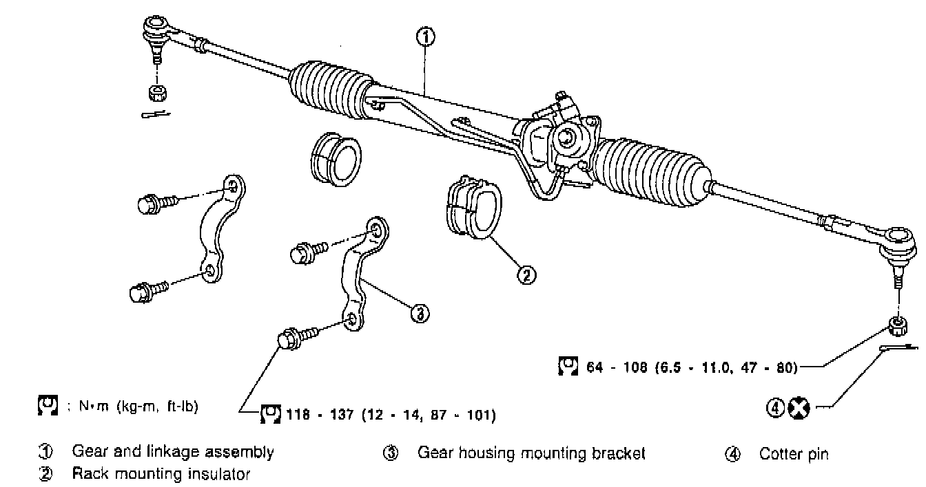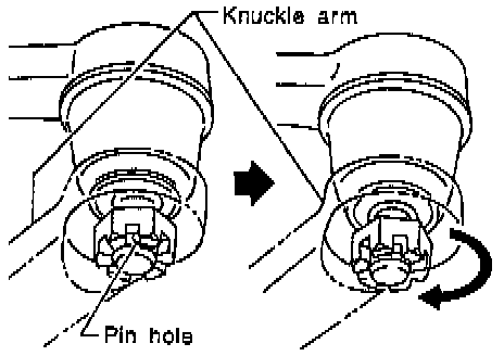 - Initially, tighten nut on tie-rod outer socket and knuckle arm to 64 - 69 Nm (47 - 51 ft. lbs.). Then tighten further to align nut groove with first pin hole so that cotter pin can be installed.
