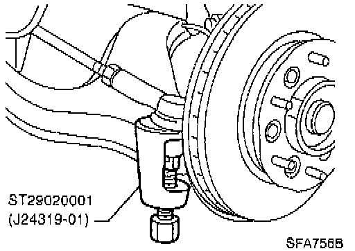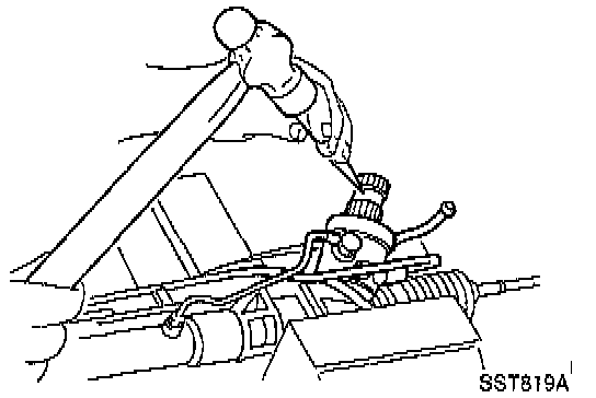 - Detach tie-rod outer sockets from knuckle arms with Tool.
