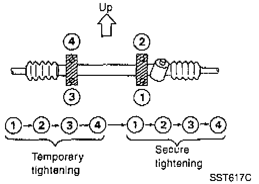 - Tighten gear housing mounting bracket bolts in the order shown.