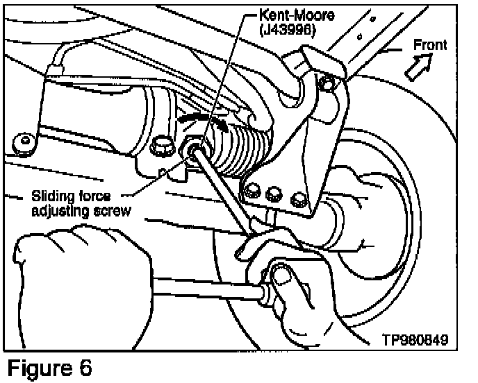 2. Use kent-Moore tool # J43996 to turn the sliding force adjusting screw clockwise 2 to 3 degrees (see Figure 6).
