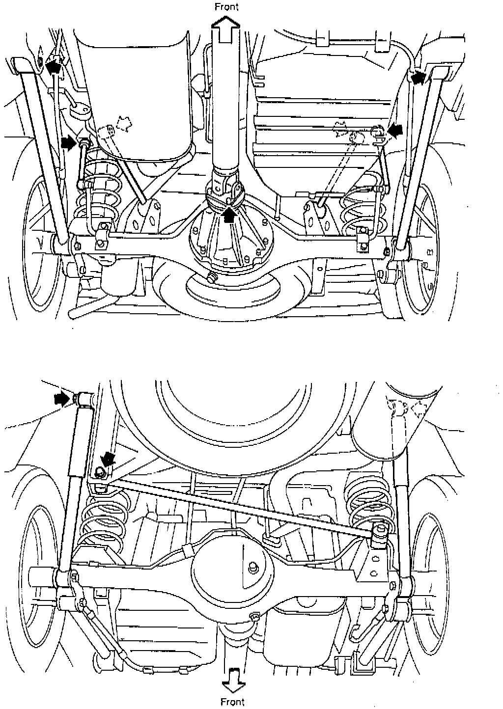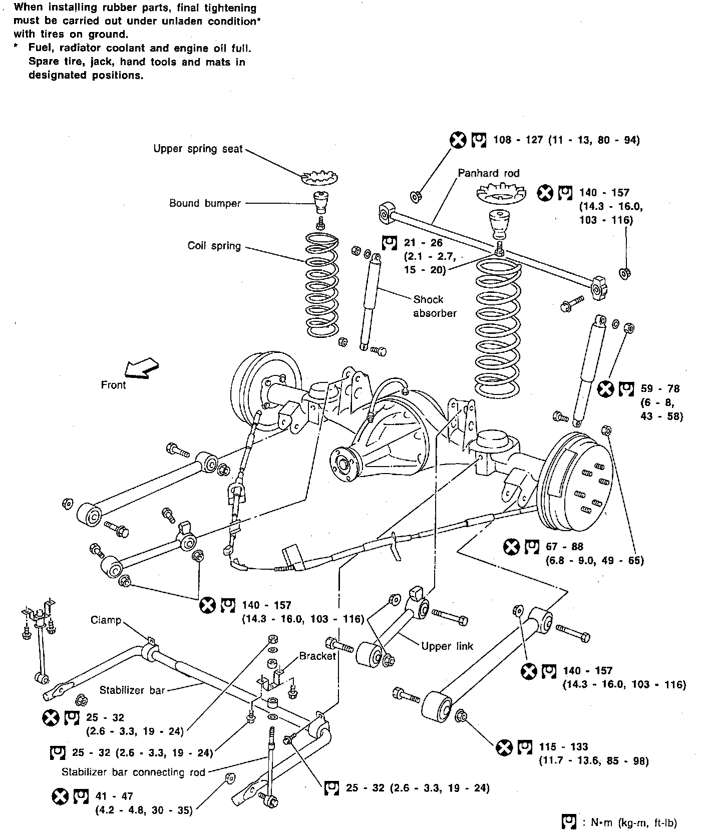 - When installing each rubber part, final tightening must be carried out under unladen condition with tires on ground.