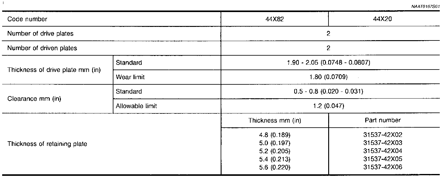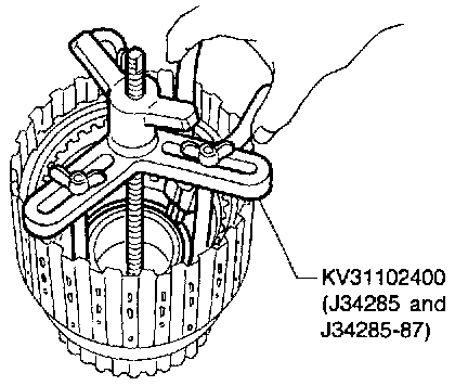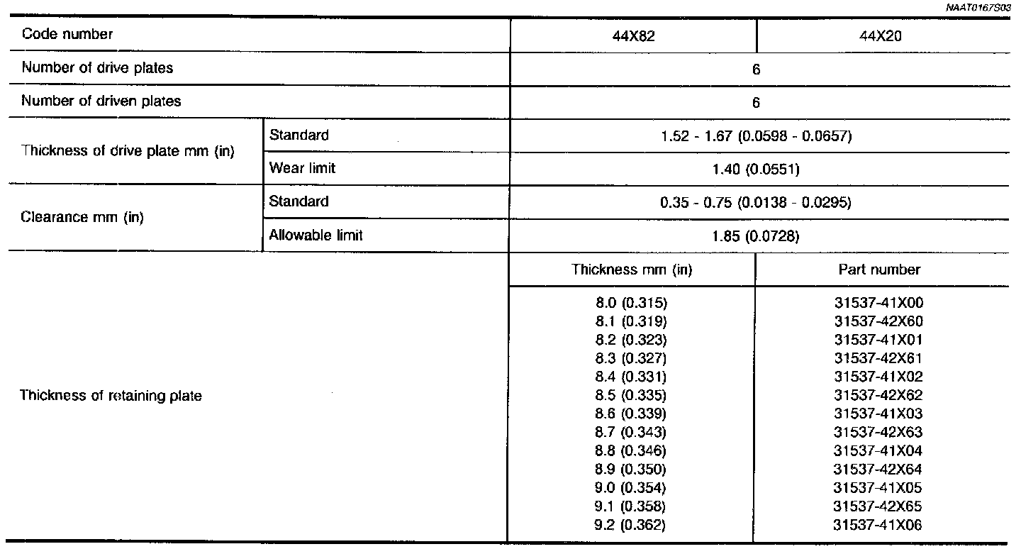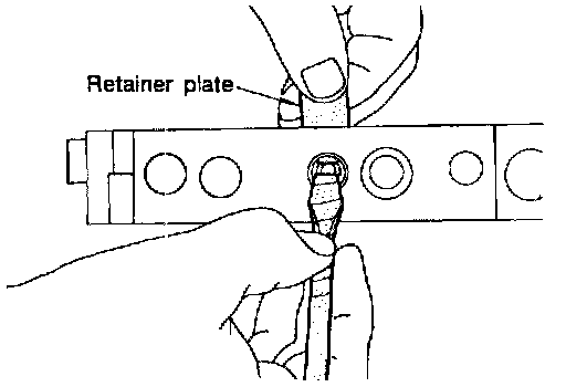7. Measure clearance between retaining plate and snap ring. It not within allowable limit, select proper retaining plate.