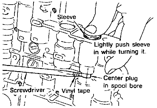- If pressure regulator plug is not centered properly, sleeve cannot be inserted into bore in upper body. If this happens, use vinyl tape wrapped screwdriver to center sleeve until it can be inserted.