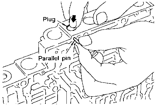 - Align parallel pin groove in plug with parallel pin, and install accumulator control valve.