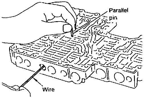 - Push 4-2 sequence valve and relay valve with wire wrapped in vinyl tape to prevent scratching valve body. Install parallel pins.