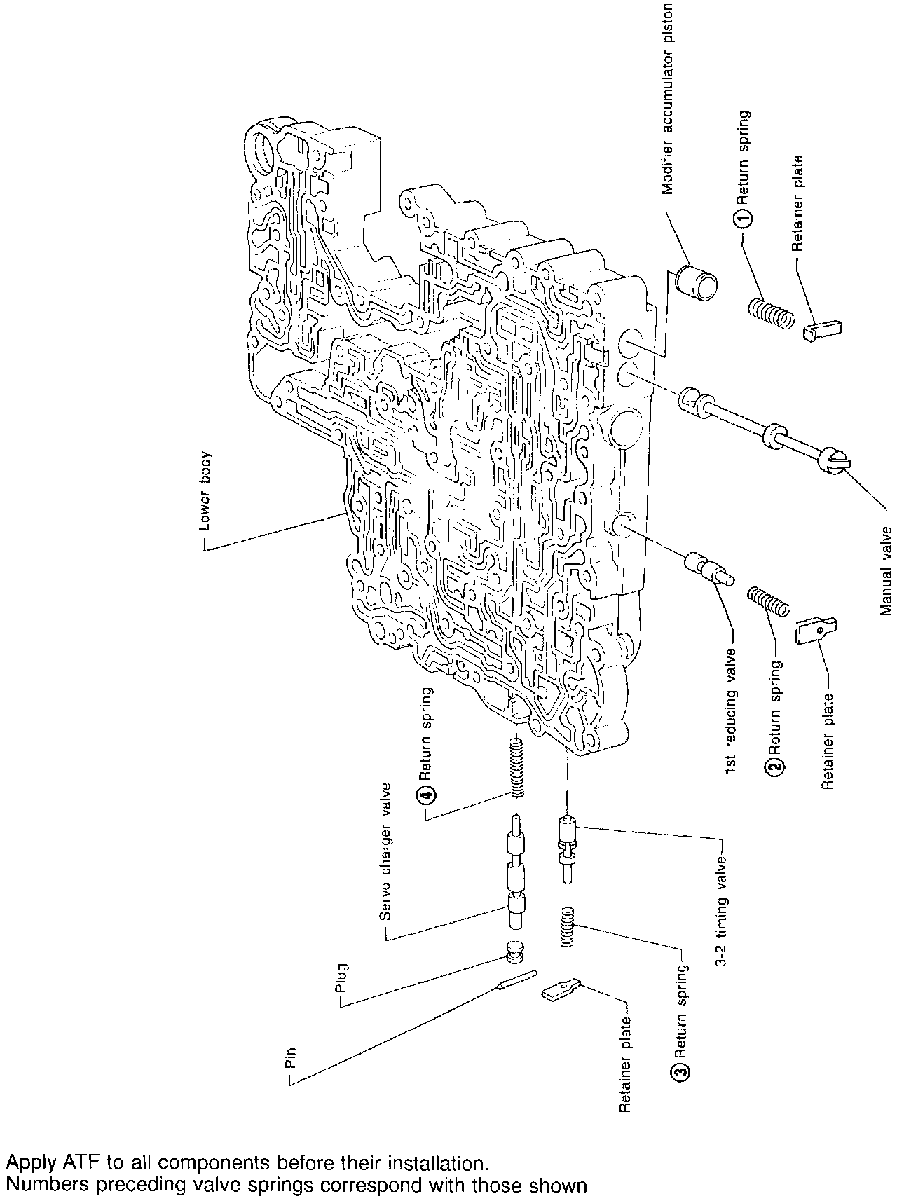 1. Lubricate the control valve body and all valves with ATF install control valves by sliding them carefully into their bores.