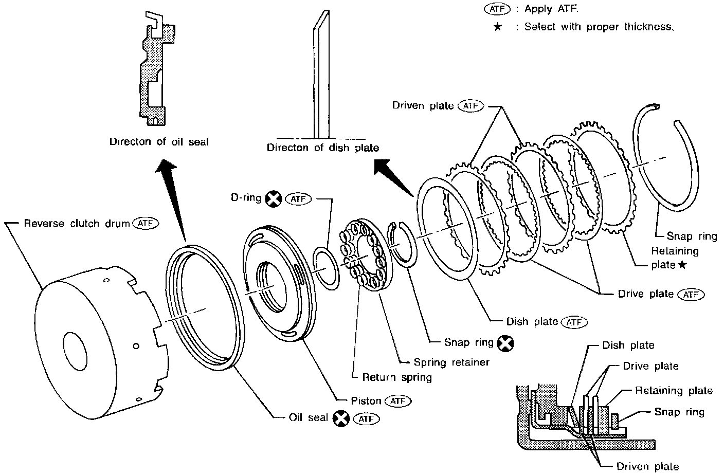 - Measurement of clearance between retaining plate and snap ring of forward clutch
