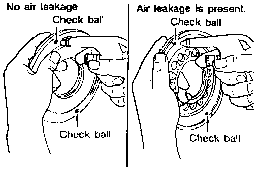 - Apply compressed air to check ball oil hole opposite the return spring. Make sure there is no air leakage.