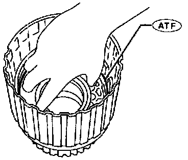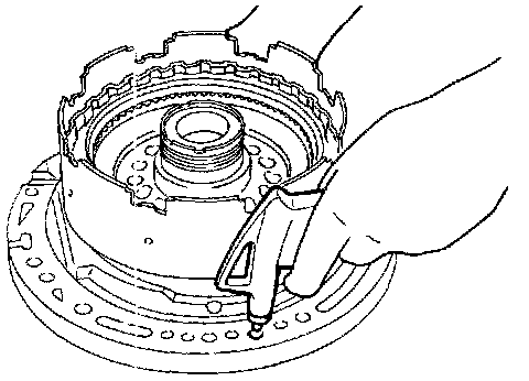 - Align notch in forward clutch piston with groove in forward clutch drum.