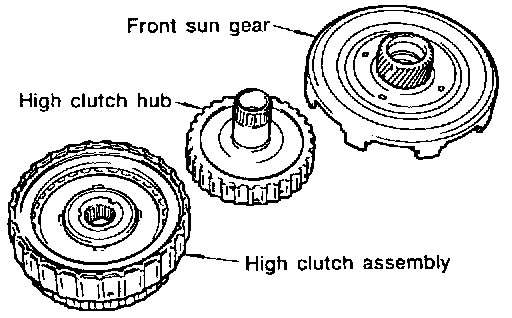 Service procedures for high clutch are essentially the same as those for reverse clutch, with the following exception: