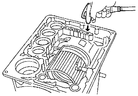 - Also apply compressed air to oil hole on return spring side to assure that air leaks past ball.