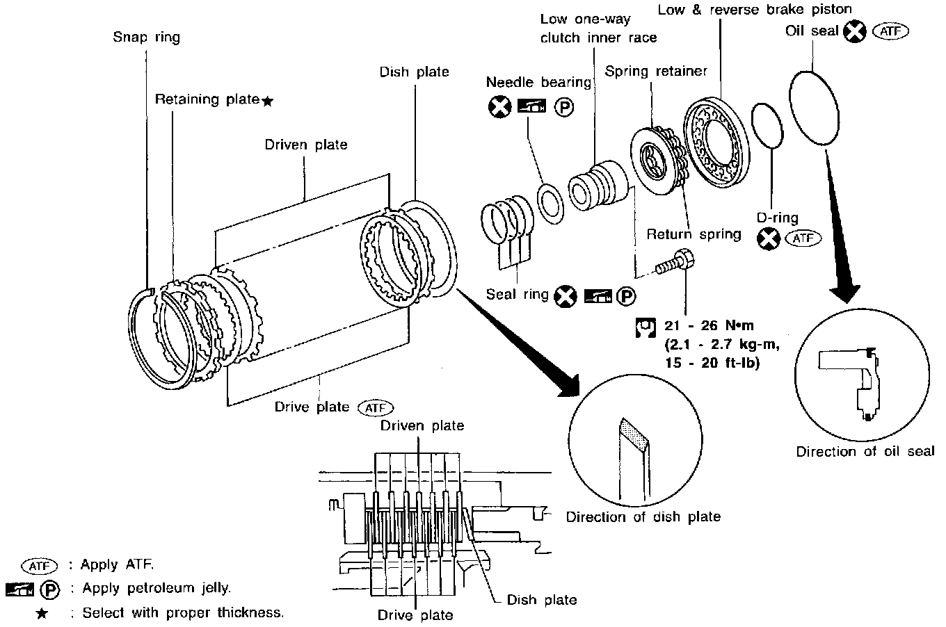 2. Remove snap ring, low and reverse brake drive plates, driven plates and dish plate.