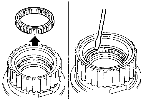 5. Remove forward one-way clutch and end bearing as a unit from forward clutch hub.