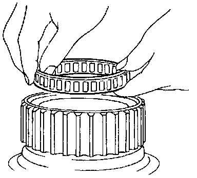 3. Install low one-way clutch onto forward clutch drum by pushing the roller in evenly.
