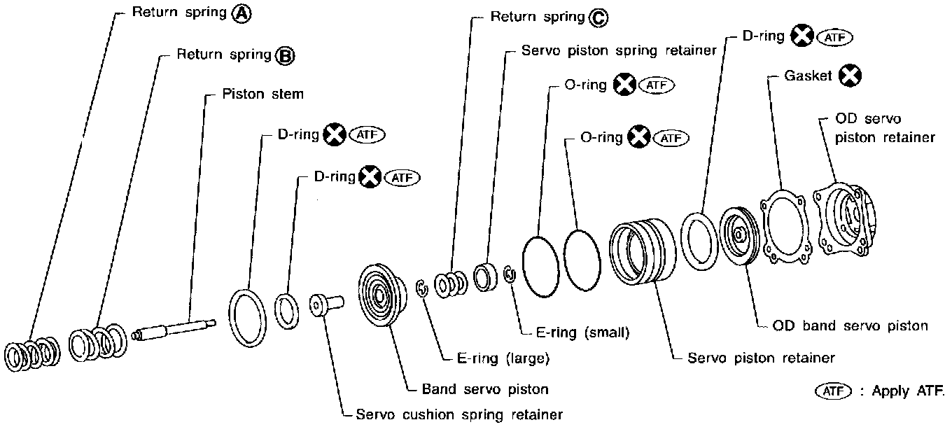 5. Install servo piston spring retainer, return spring C and piston stem onto band servo piston.