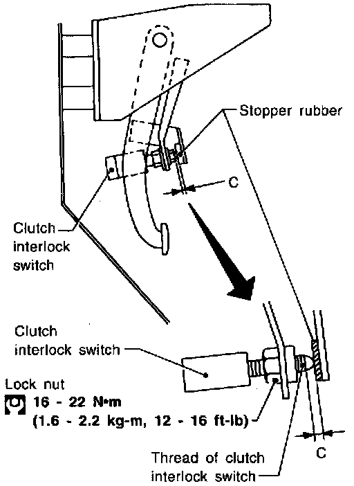 1. Adjust clearance "C" shown in the figure while fully depressing clutch pedal.
