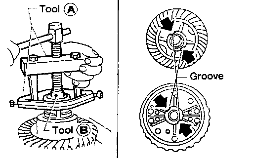 DIFFERENTIAL CASE1. Remove side bearing inner cones. To prevent damage to bearing, engage puller jaws in groove.