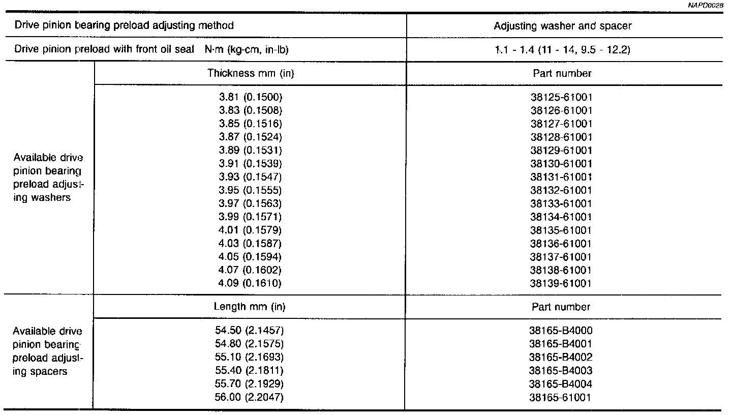 Drive pinion bearing preload adjusting washer: Refer to image.