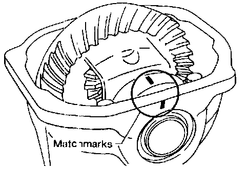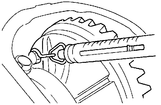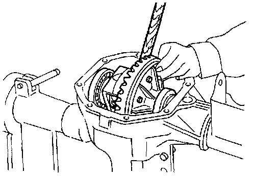 Check gear teeth for scoring, cracking or chipping. It any damaged part is evident, replace ring gear and drive pinion as a set (hypoid gear set).