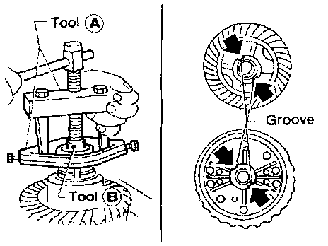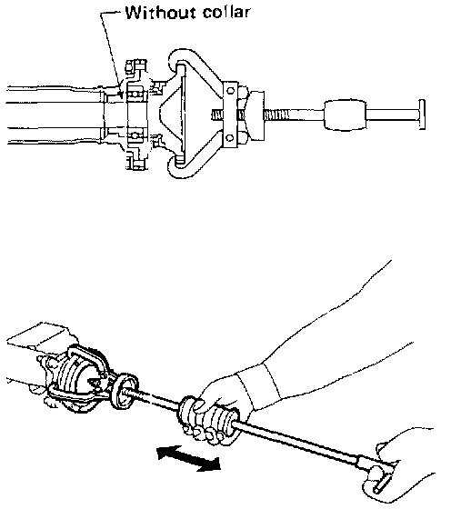 1. Cut collar with cold chisel. Be careful not to damage differential side shaft.