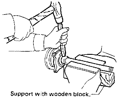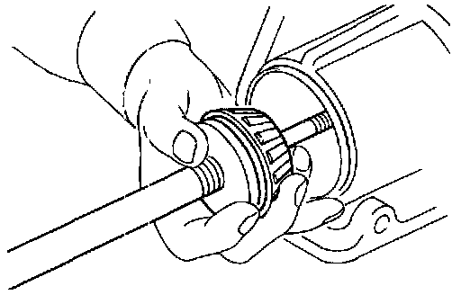 2. Check bearing for wear, scratches, pitting or flaking. Check tapered roller bearing for smooth rotation. If damaged, replace outer race and inner cone as a set.