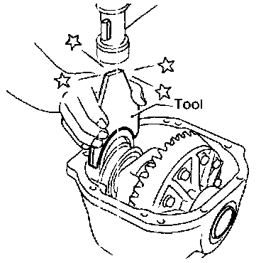 4. Using Tool, install original carrier side bearing preload shims on the carrier end, opposite the ring gear.
