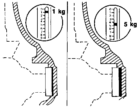 Specification: 34.3 - 39.2 Nm (3.5 - 4.0 kg, 7.7 - 8.8 lbs.) of pulling force at the ring gear bolt