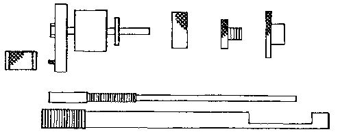 4. Assemble the front pinion bearing inner cone and the J34309-2 gauge anvil together with the J34309-1 gauge screw in the final drive housing. Make sure that the pinion height gauge plate, J34309-16, will turn a full 360 degrees, and tighten the two sections together by hand.