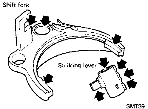 - Check contact surface and sliding surface for wear, scratches, projections or other damage.