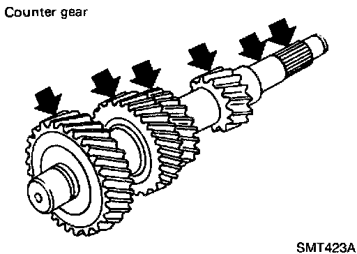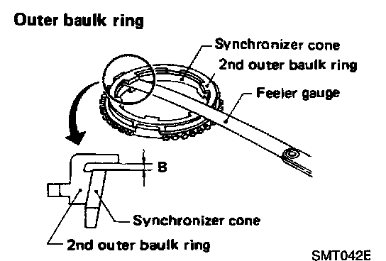 - If dimension "A" or "B" is smaller than the wear limit, replace outer baulk ring, inner baulk ring and synchronizer cone as a set.