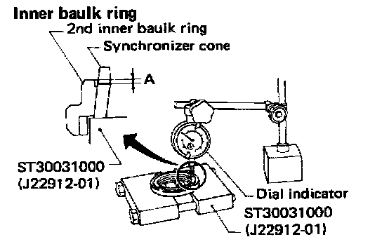b. While holding baulk ring against reverse cone as far as it will go, measure dimension "A" with dial indicator.