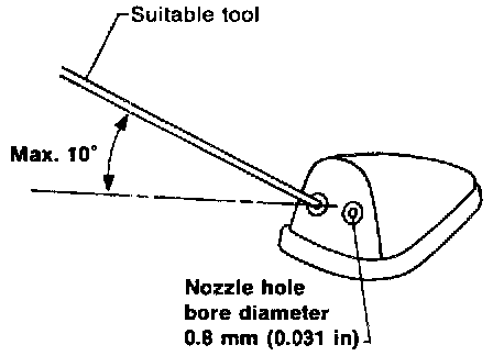 - Adjust washer nozzle with suitable tool as shown in the figure.