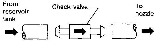 - A check valve is provided in the washer fluid line. Be careful not to connect check valve to washer tube in the wrong direction.