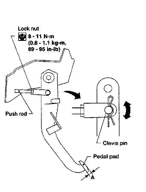 3. Make sure that clevis pin can rotate smoothly. If not, readjust pedal free play with master cylinder push rod.