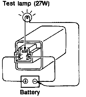 - Connect a battery and test lamp to the combination flasher unit, as shown. Combination flasher unit is properly functioning if it blinks when power is supplied to the circuit.