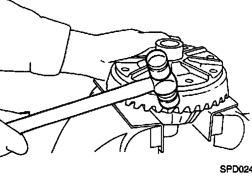 4. Punch off pinion mate shaft lock pin from ring gear side.