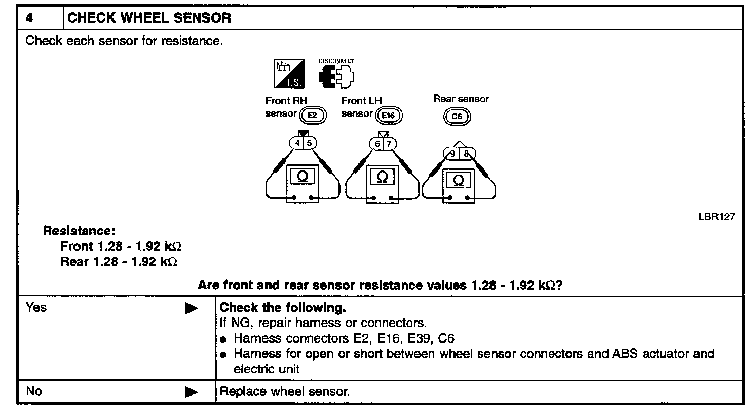 CHECK WHEEL SENSOR ELECTRICAL