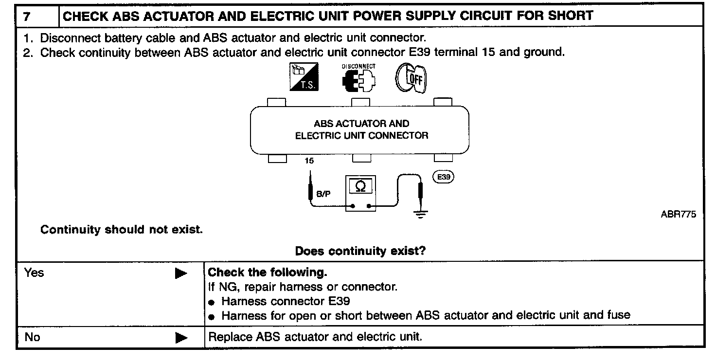 CHECK ABS ACTUATOR AND ELECTRIC UNIT POWER SUPPLY CIRCUIT FOR SHORT