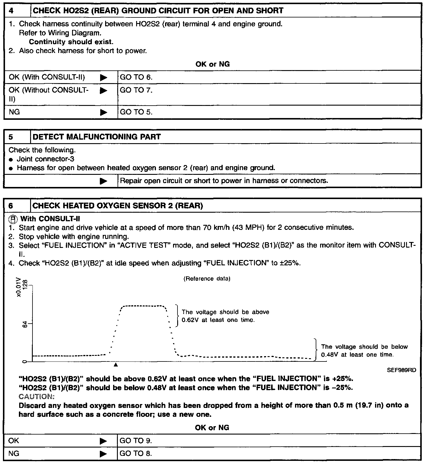 NOTE: If "DIAGNOSTIC TROUBLE CODE CONFIRMATION PROCEDURE" has been previously conducted, always turn ignition switch OFF and wait at least 5 seconds before conducting the next test.