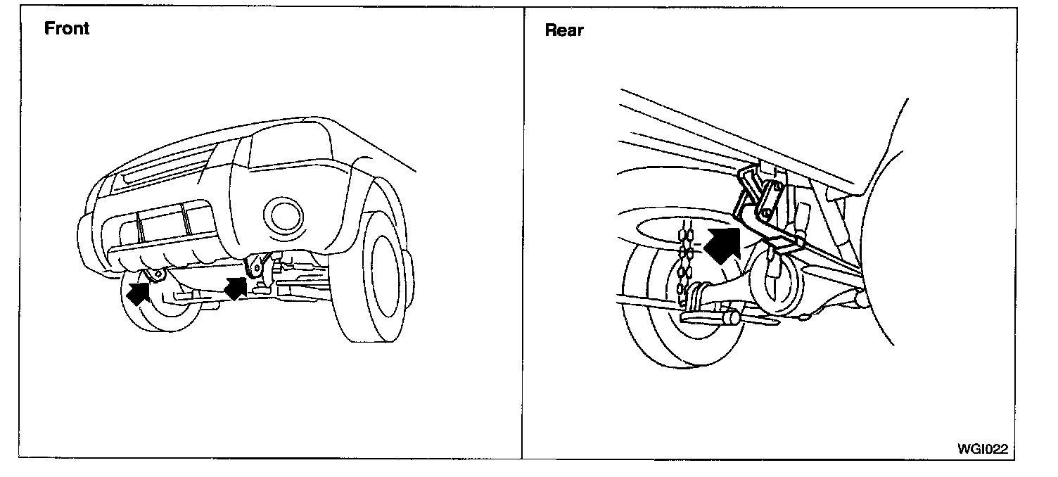 - Tow chains or cables must be attached only to the main structural members of the vehicle.