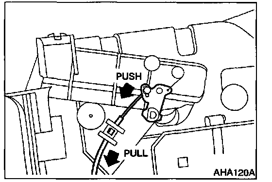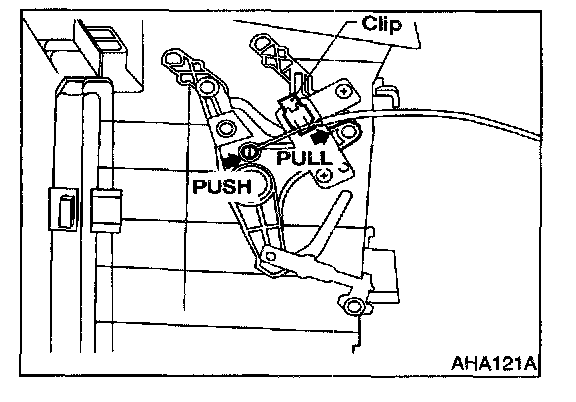 - Turn temperature control switch to max. COLD position. Set air mix door lever in full hot mode. Pull on outer cable in direction of arrow and then clamp it.