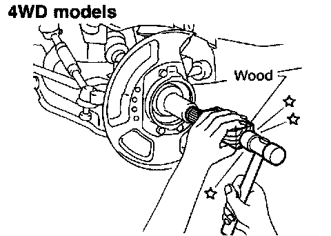 3. Separate drive shaft from knuckle spindle by slightly tapping drive shaft end (4WD models).