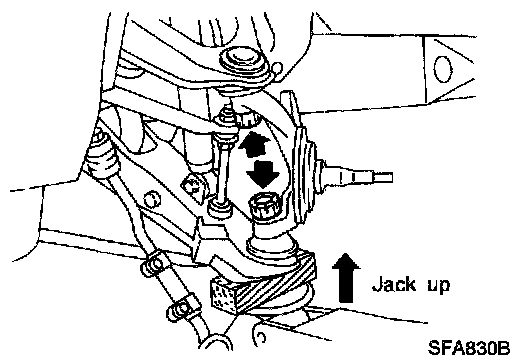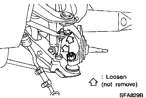 During above operation, never remove ball joint nuts which are loosened in step (a) above.