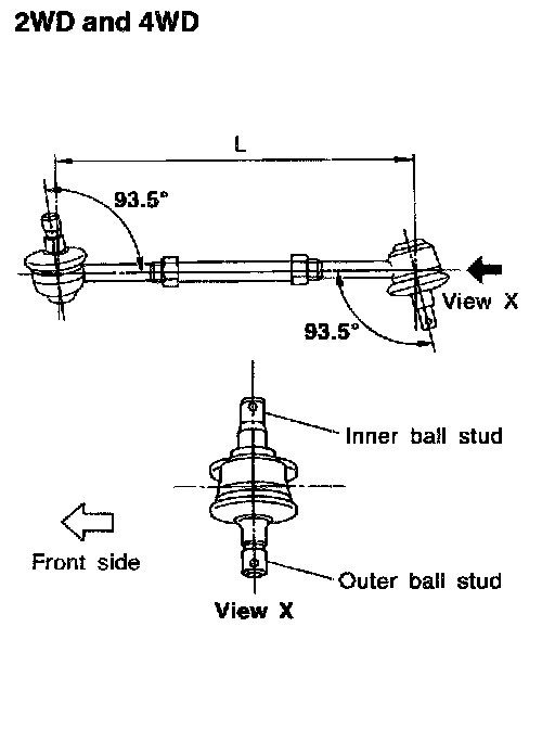 1. When tie-rod ball joints and tie-rod bar are separated, adjust tie-rod length correctly.