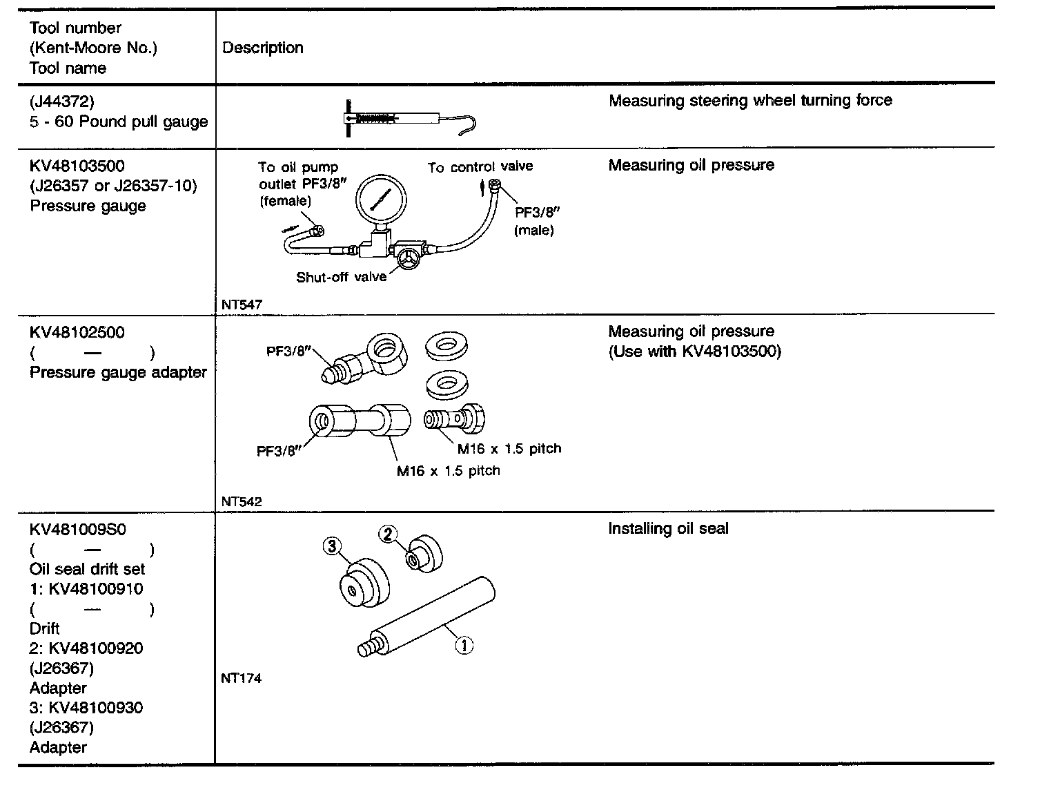 The actual shape of Kent-Moore tools may differ from those of special service tools illustrated here.